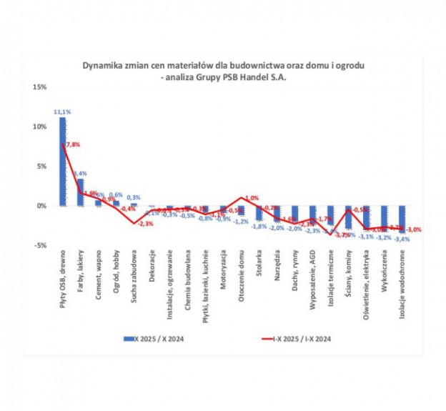 We wrześniu 2024 r. Grupa PSB Handel S.A. odnotowała spadek cen materiałów budowlanych w porównaniu do września 2023 r. Dynamika cen wyniosł...