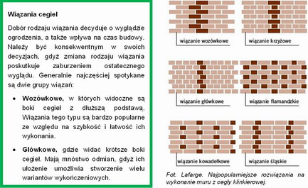 "Grubość prętów powinna mieścić się między 8 a 10 mm. Tak przygotowane zbrojenie obudowuje się cegłami i wypełnia betonem o plastycznej konsystencji. Do wykonania zaprawy możemy wykorzystać cement Ekspert lub zaprawę murarską wykonaną na cemencie Lepo, która idealnie nadaje się do murowania klinkieru. Nie sposób określić wzorcowych wymiarów słupków, gdyż zależą one od projektu. W przypadku ogrodzeń klinkierowych są to przeważnie 4 cegły. Aby utrzymać równą tonację kolorystyczną przy wznoszeniu słupków, należy pamiętać o układaniu na przemian cegieł z różnych palet" - mówi Sławomir Rutczyński, doradca techniczny Lafarge.