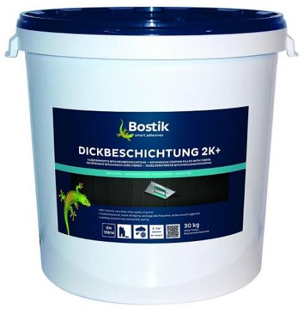 Dickbeschichtung 2K+ marki Bostik to dwuskładnikowa, bezrozpuszczalnikowa zaprawa z włóknami, która ma bardzo dobrą przyczepność do podłoży suchych, a także lekko wilgotnych. Może być stosowana na różnych rodzajach powierzchni, np. betonie, jastrychu, cegle, bloczkach wapienno-piaskowych i z betonu komórkowego. Nadaje się więc do izolacji ścian fundamentowych, płyt fundamentowych, garaży podziemnych i murów oporowych, a także naziemnych części budynku stykających się z gruntem, np. tarasów, cokołów, słupów. Uszczelnienie musi być wykonane od strony działania wody (od tzw. strony pozytywnej), ale masa może być także stosowana do izolacji wewnątrz w miejscach gdzie nie przebywają na stałe, ludzie. Dickbeschichtung 2K+ marki Bostik sprawdzi się również w przypadku ocieplania budynków do połączeń z płytami styropianowymi lub XPS. Preparat może być nakładany do 3 m głębokości. Dzięki dwukomponentowej formule, masa bardzo szybko staje się odporna na wodę - już po 2 godzinach od aplikacji podziemne części budynku można zasypać, a po 4 godzinach powłoka uzyskuje odporność na deszcz.