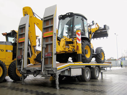 Stopień efektywności wykorzystania maszyn budowlanych zależy w dużym stopniu od możliwości ich szybkiego przetransportowania pomiędzy placami budowy. W przypadku wyboru innego środka transportu niż napęd własny maszyny dobrym rozwiązaniem jest wybór odpowiedniej naczepy lub przyczepy niskopodwoziowej współpracującej z pojazdem mechanicznym i przystosowanej do przewozu maszyn budowlanych. Dobór odpowiedniej naczepy lub przyczepy uzależniony jest od gabarytów i wagi przewożonego ładunku. Zgodnie z przepisami o ruchu drogowym ładunek powinien być umieszczony na pojeździe w sposób niepowodujący przekroczenia dopuszczalnych nacisków osi pojazdu na drogę i dopuszczalnej jego ładowności. Ładunek nie może także naruszać stateczności pojazdu ani utrudniać kierowania nim. Standardowa naczepa niskopodwoziowa w rozwiązaniu firmy KH-Kipper to 3-osiowa naczepa z osiami 3x9 ton, 3x11 ton lub 3x12 ton. Dla zmniejszenia zużycia ogumienia ostatnia oś proponowana jest w wersji samoskrętnej. Dodatkowo naczepa może być wyposażona w system sterowania skrętem Tridec, dzięki czemu naczepa jest zwrotniejsza i łatwiejsza w prowadzeniu. Naczepa wykonana może być również w wersji 4 i 5-osiowej.